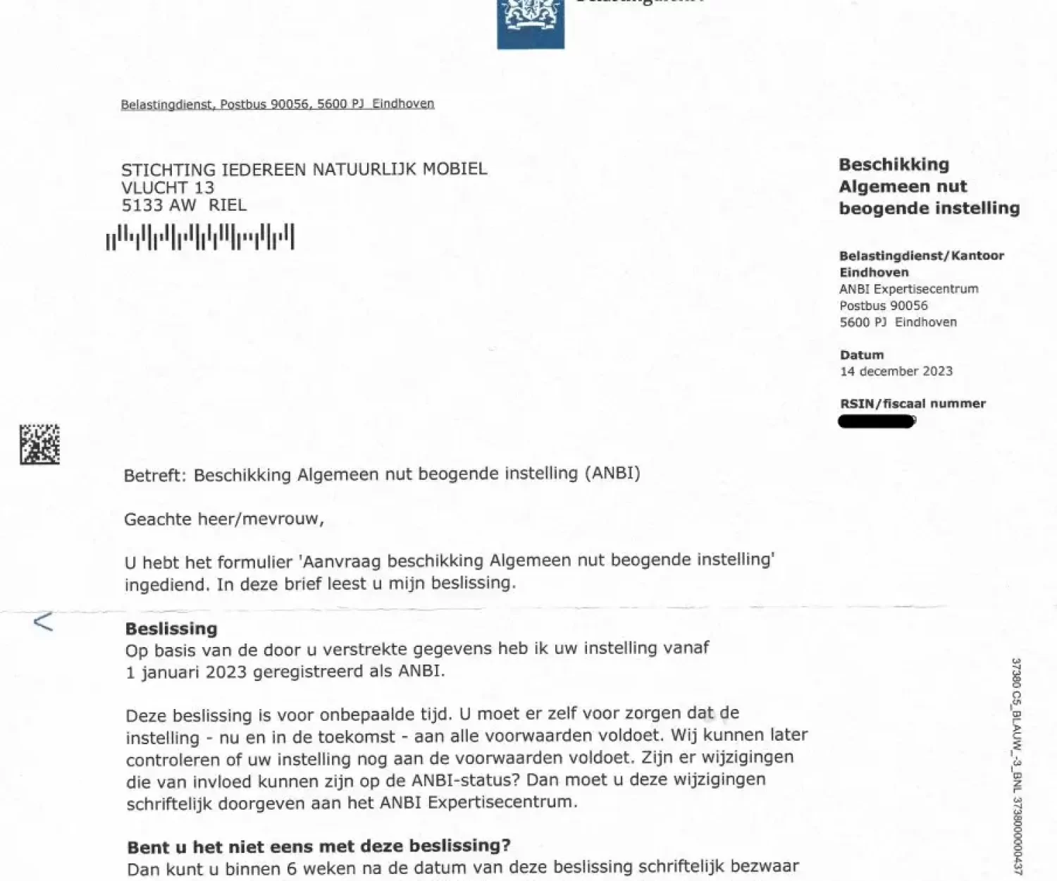 ANBI-status Stichting Iedereen Natuurlijk Mobiel
